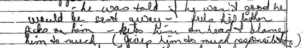 that if my father didn’t start participating in family counselling that I was going to be removed from the home and placed into foster care or residential care.