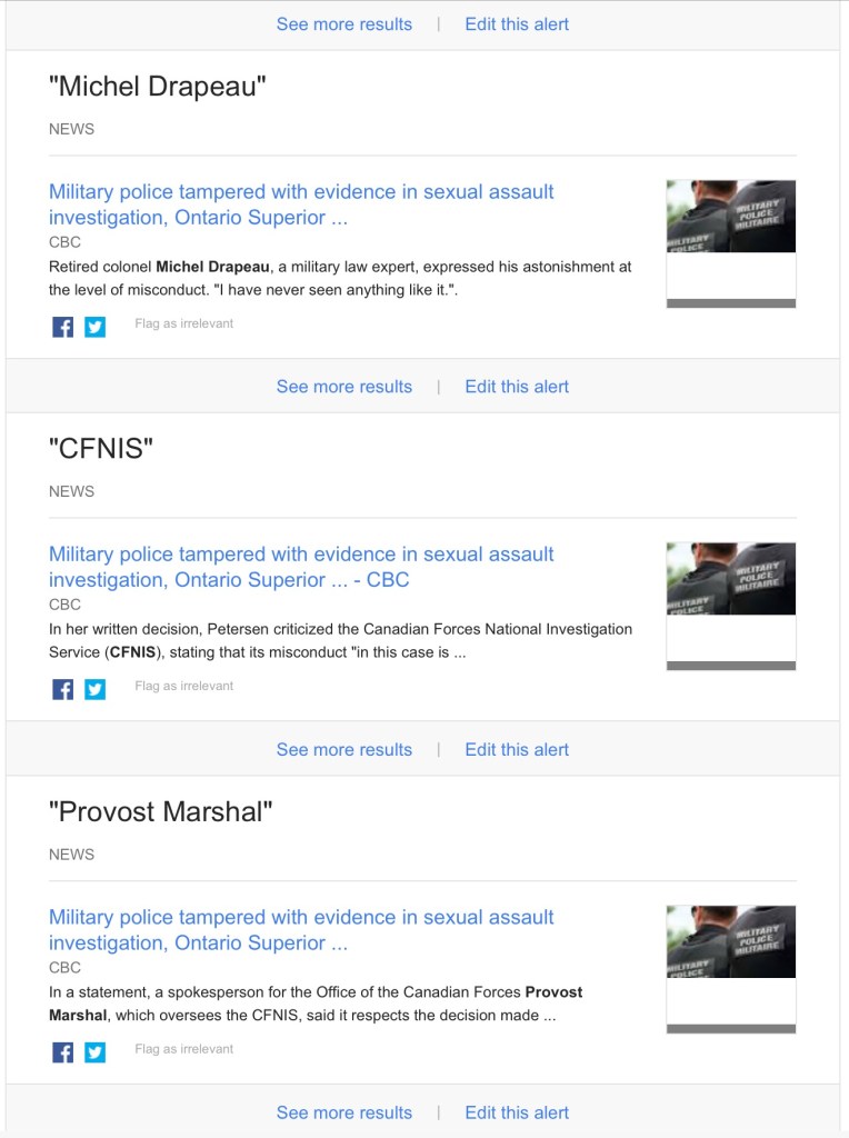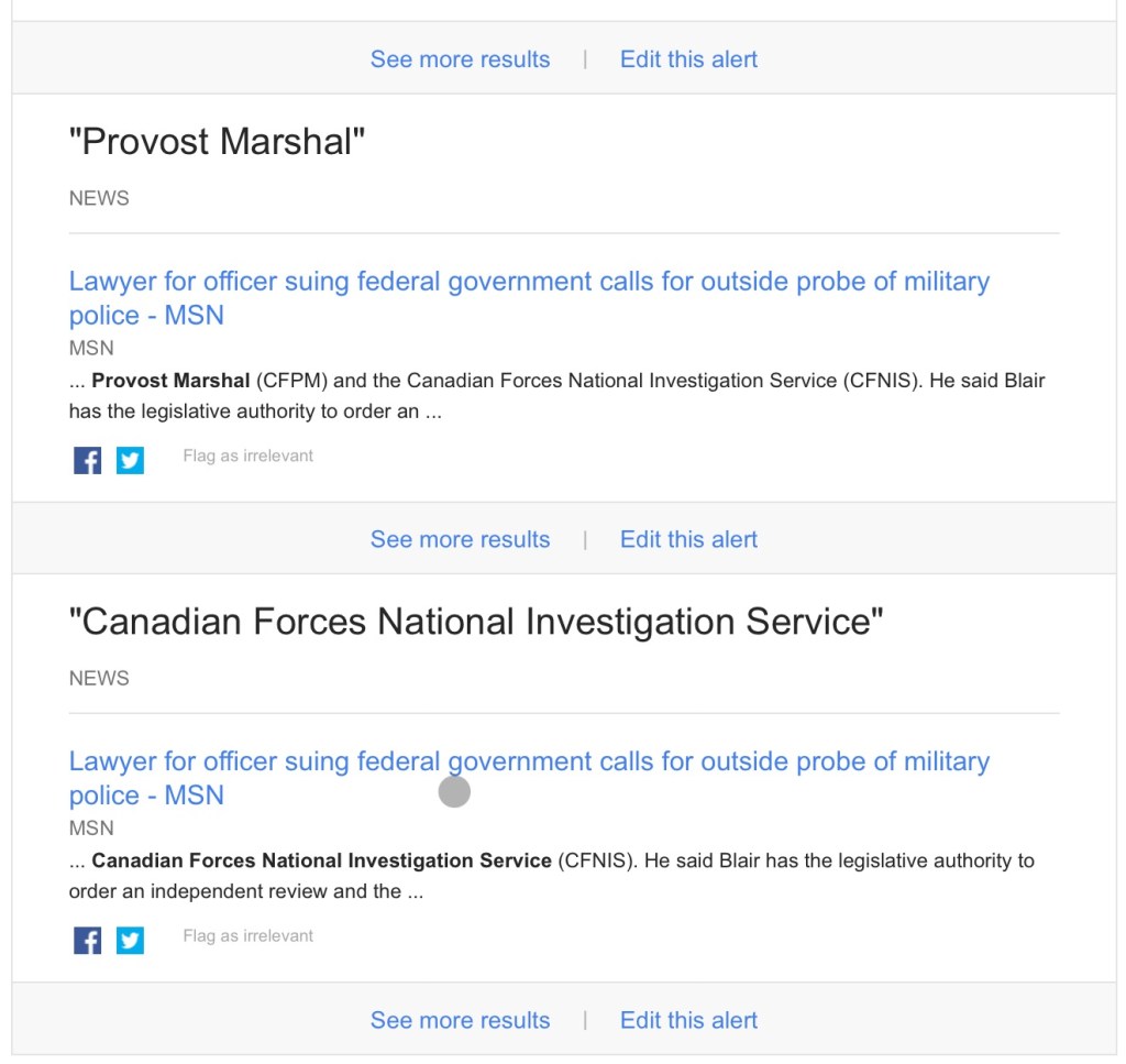 But at least 2 or 3 times a month I get alerts about the Canadian Forces military police and the CFNIS.