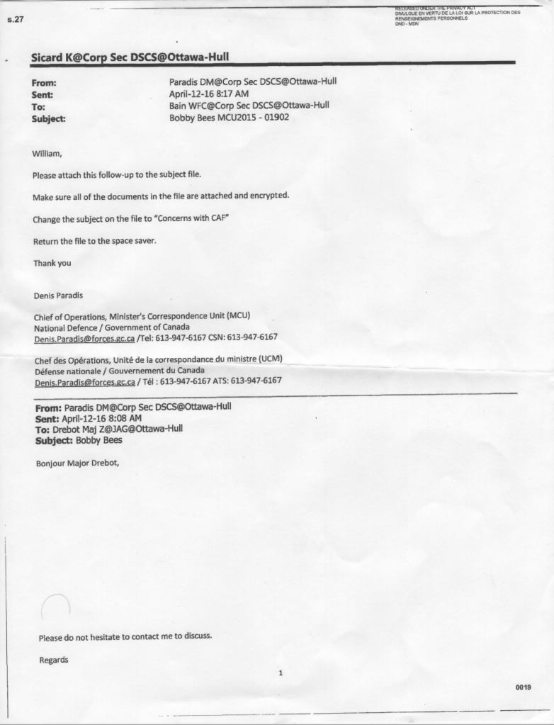 The existence of the MPCC is just to satisfy a checkbox in Bill C-25. And that was the establishment of an outside civilian agency to oversee the military police. And that’s it. That’s why the Canadian Forces Provost Marshal has absolutely no issue with thumbing its nose at the MPCC as the CFPM knows there’s nothing of any real consequence that the MPCC can do.