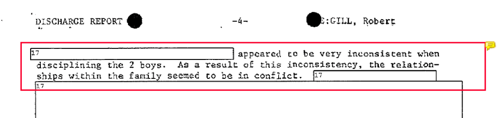 After the meeting was over I searched my copy of my foster care records, but I couldn’t find this paragraph anywhere. I found the page, but the section where this paragraph should have been was redacted.