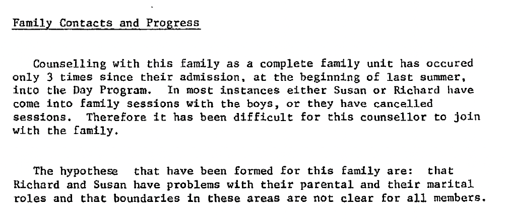 See, my issues had nothing to do with 1-1/2 years of sexual abuse on CFB Namao. Nor did my issues stem from a dysfunctional family. No, my issues were the fault of the school on base and the fault of mr grandmother. Nothing to do with Richard.