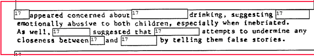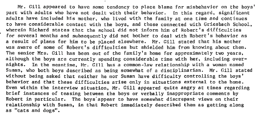 This part was still redacted, but let me unredact this for you ” Mr. Gill appeared concerned about his mother’s drinking, suggesting she was emotionally abusive to both children, especially when inebriated. As well, Mr. Gill suggested that his mother attempts to undermine any closeness between him and his sons by telling them false stories”. The only stories that grandma used to tell me, I can’t speak for my brother, but grandma always told me not to believe what Richard had said about our mother leaving, that when I was older I would learn what the truth was.