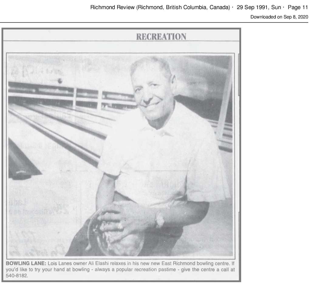 Ali had built a small housing development in East Richmond and in this development he built a small plaza. And in this small plaza he built a small 12 lane bowling centre.