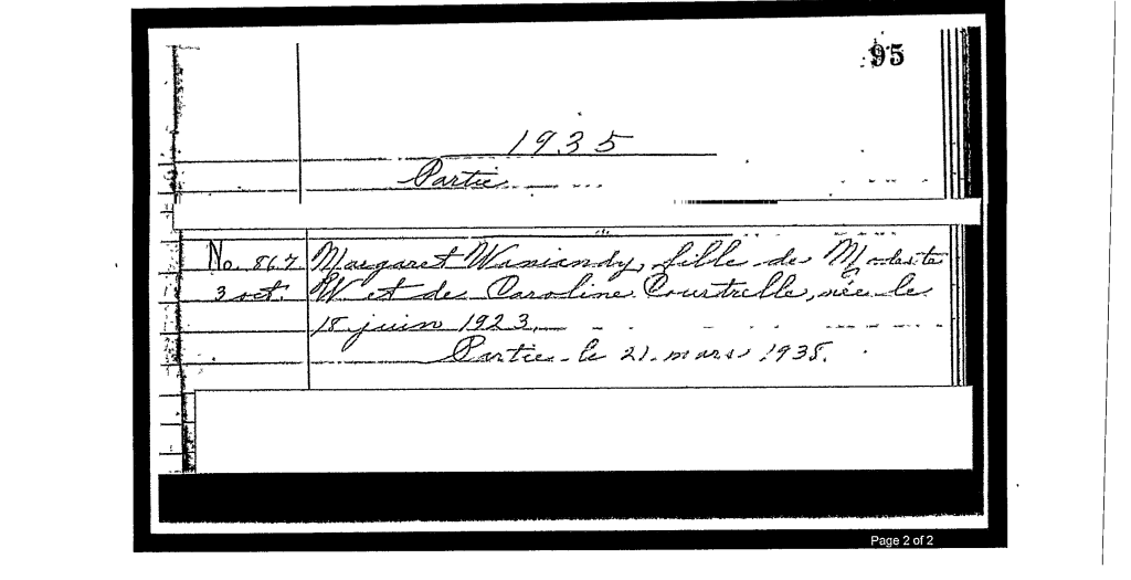 I don’t know very much about her father Modesta Waniandy or her mother Caroline Coutrelle other than her father died in Uranium City, Saskatchewan around 1969. He had been a hard rock miner.