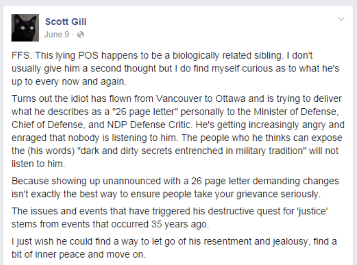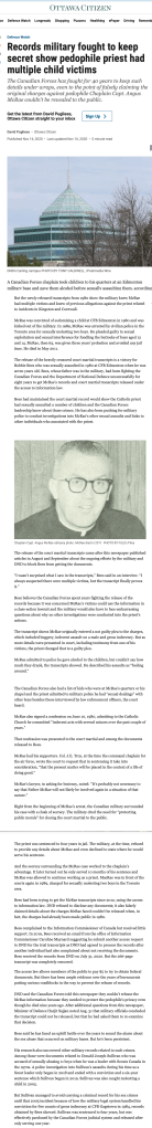 I have asked numerous people familiar with CFAO 19-20 if they believed ꝥ military dependents living on base in military housing were affected by CFAO 19-20 and the answer was generally “no”. Why was the answer “no”? Chalk it up to human nature to ¬ acknowledge the failings of humans. People want to believe ꝥ the military was bound by honour and ꝥ military rules and regulations wouldn’t following the serving parent into the family house on base.