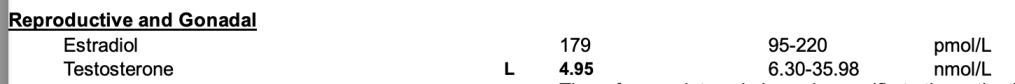 May 2024 was when I started. This blood test was to establish what my base hormone levels were.