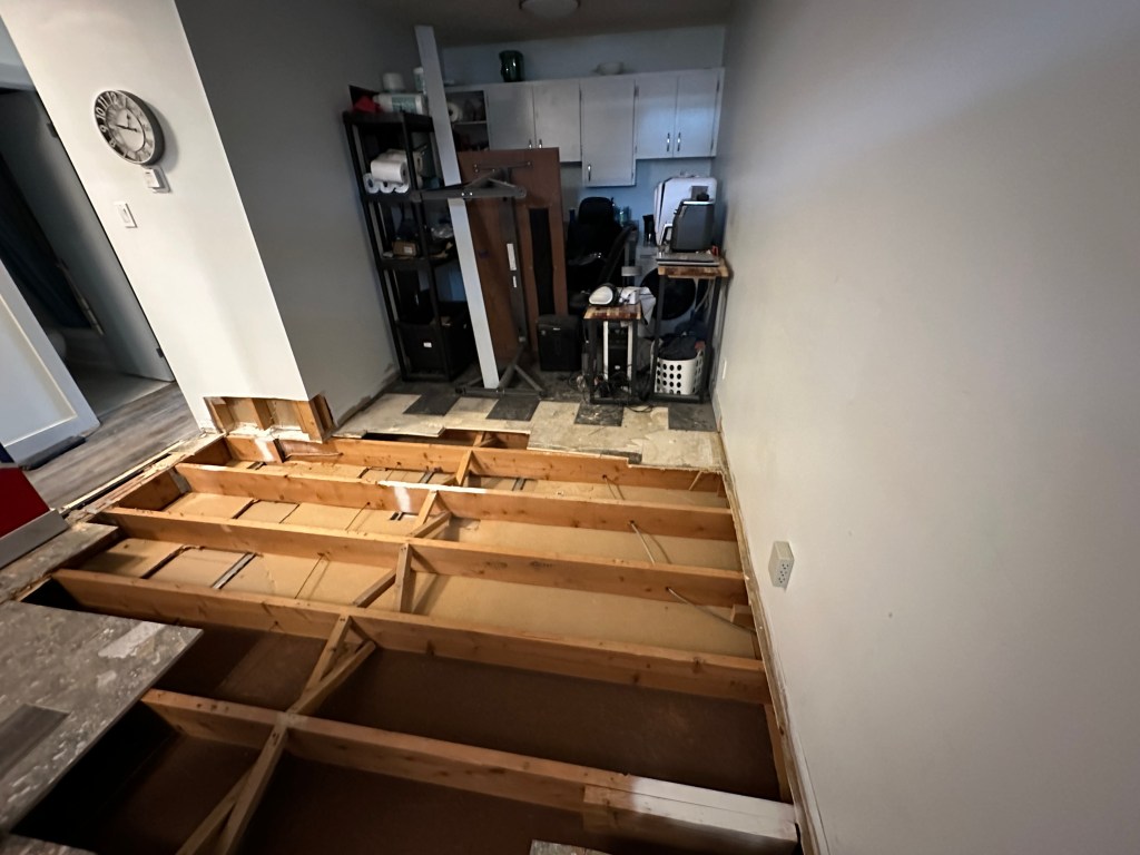When I went in to the space the smell of death and rot was still heavy in the air even though the property management company had removed the plywood flooring and sealed the parts of the framing that couldn’t be removed.