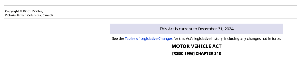 The roads in British Columbia are governed by the B.C. Motor Vehicle Act.